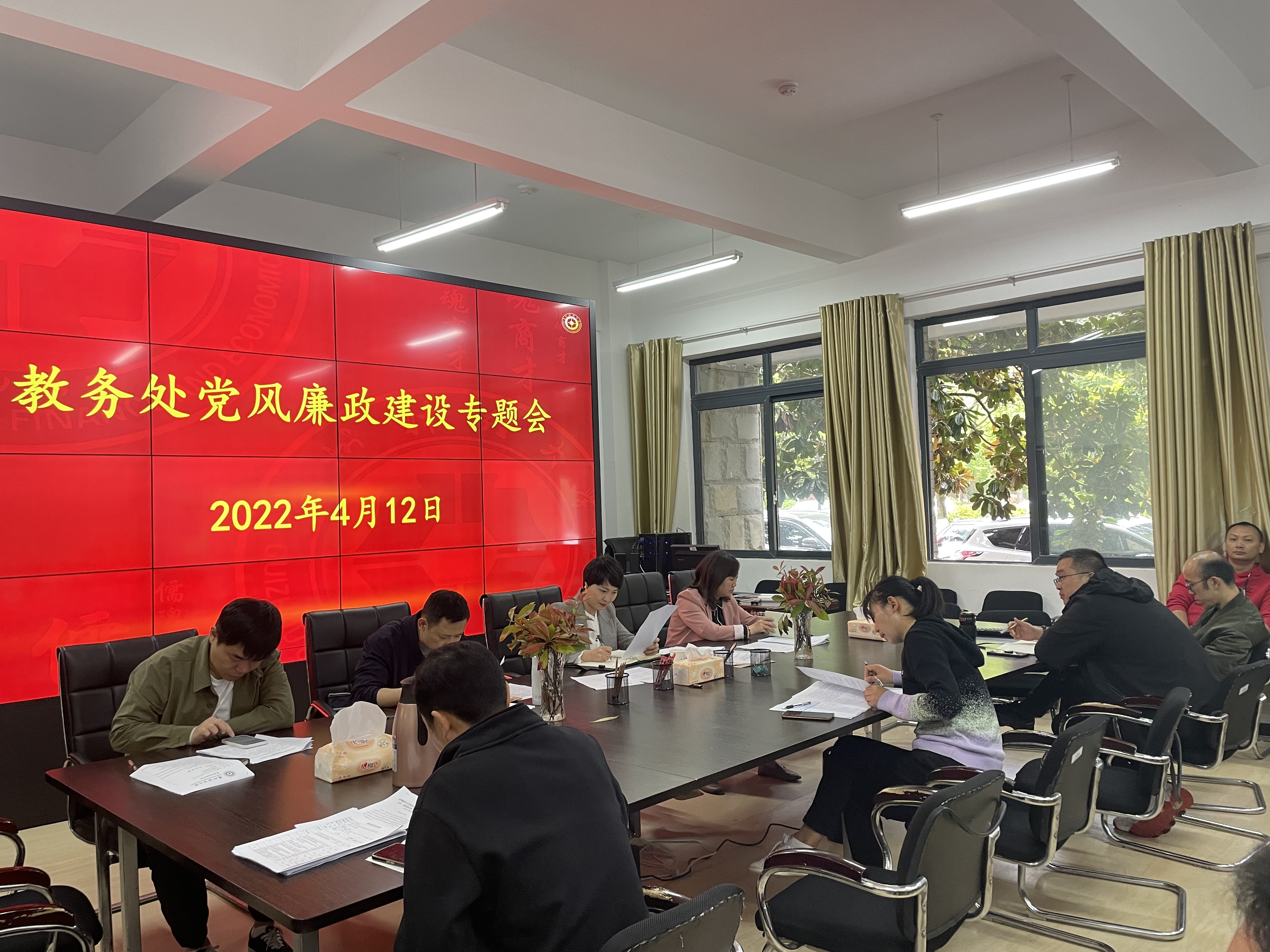 4月12日上午,教务处在立德楼142会议室召开2022年上半年党风廉政建设专题会议。会议由教务处党支部纪检委员令狐新荣主持,教务处全体教职工参会。