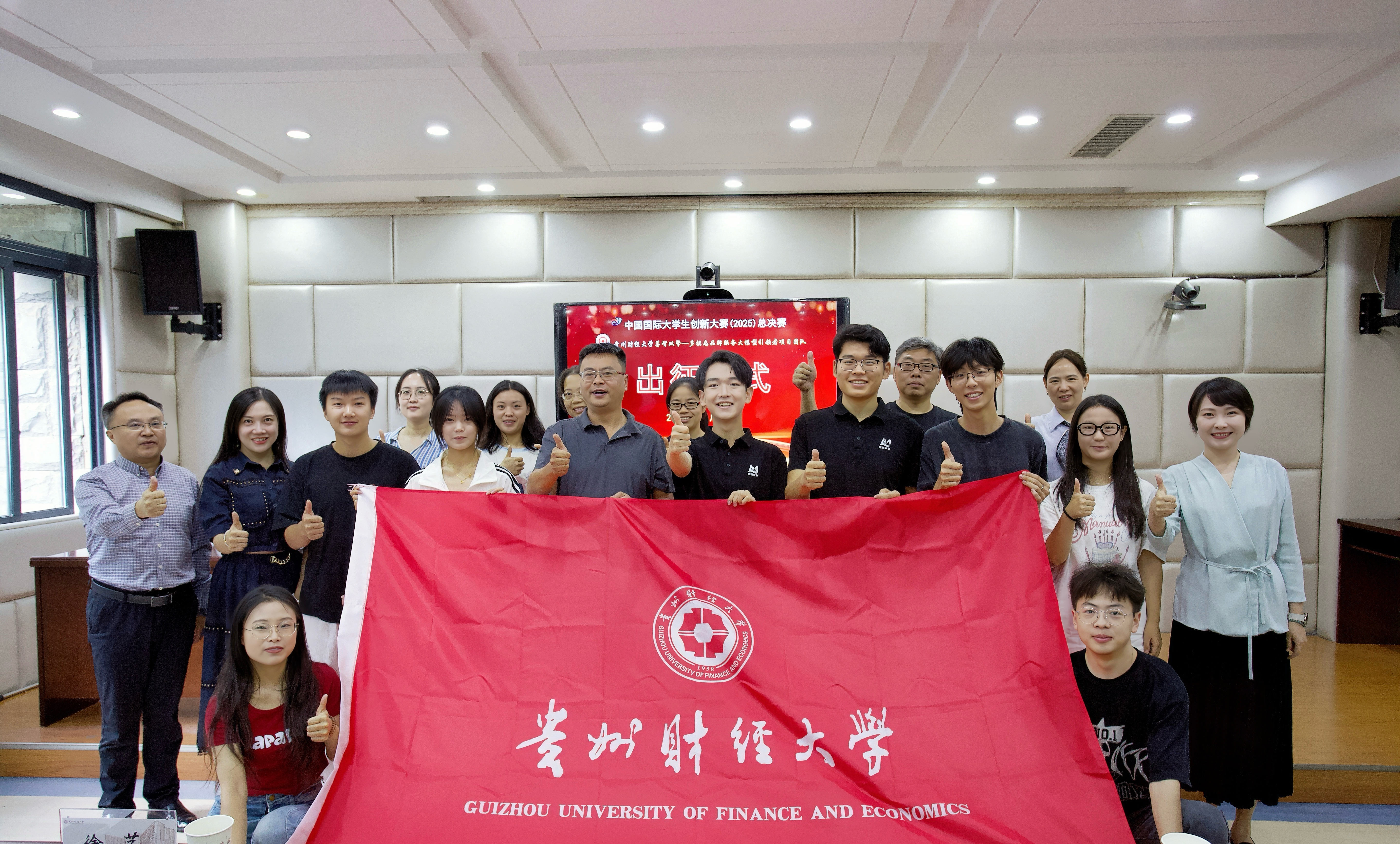 出征总决赛前,副校长李烨、副校长徐艺出席了项目出征仪式,听取备赛情况,勉励参赛团队保持自信,以平和心态展现我校“儒魂商才”的气度和专业素养,在国赛舞台上挥洒贵财学子“敢闯会创”的激情,彰显贵财青年的智慧与担当。